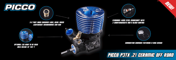 The newest version of PICCO Buggy race engines features a traditional 3+2 port cylinder with updated CNC machining.